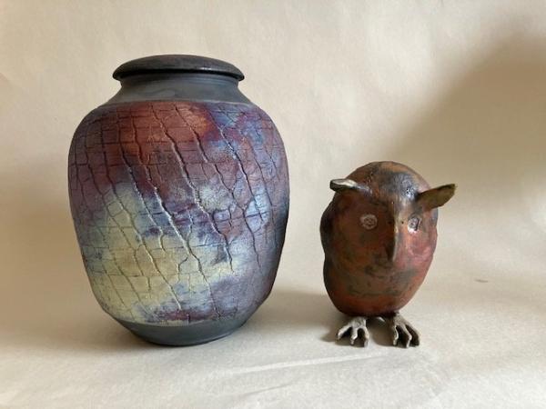 Andrea lives in New Hartford, CT and has been working with clay and with Expressions since 1978. Drawn to (and challenged by) the unpredictability of the pottery process, she loves seeing concepts evolve and find their color, never quite sure of what will result. Her work is diverse, from gas-fired functional stoneware to more decorative and often sculptural raku pieces. She prefers the effects of these more atmospheric firings where so many variables come into play.