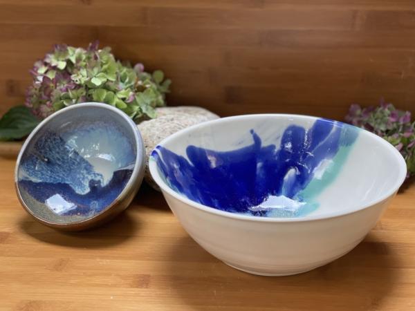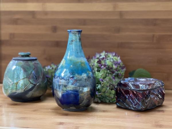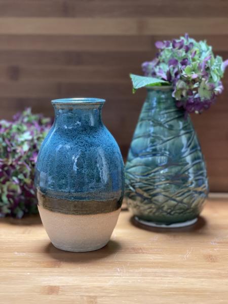 My pottery experience began as a student five years ago, and now I’m a member at Expressions Pottery Workshop. Working with clay has given me the opportunity to see things from a different perspective. As a graphic designer/artist, I’m frequently working on the computer or drawing/painting on flat surfaces. Making pottery has given me freedom to create using clay as a new medium. I like to think of my pottery as functional and organic.